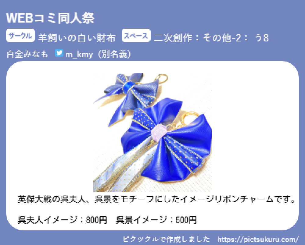以降、主に二次創作を目的としてのハンドメイド制作を主体とする場合は、この別名義での活動になります。